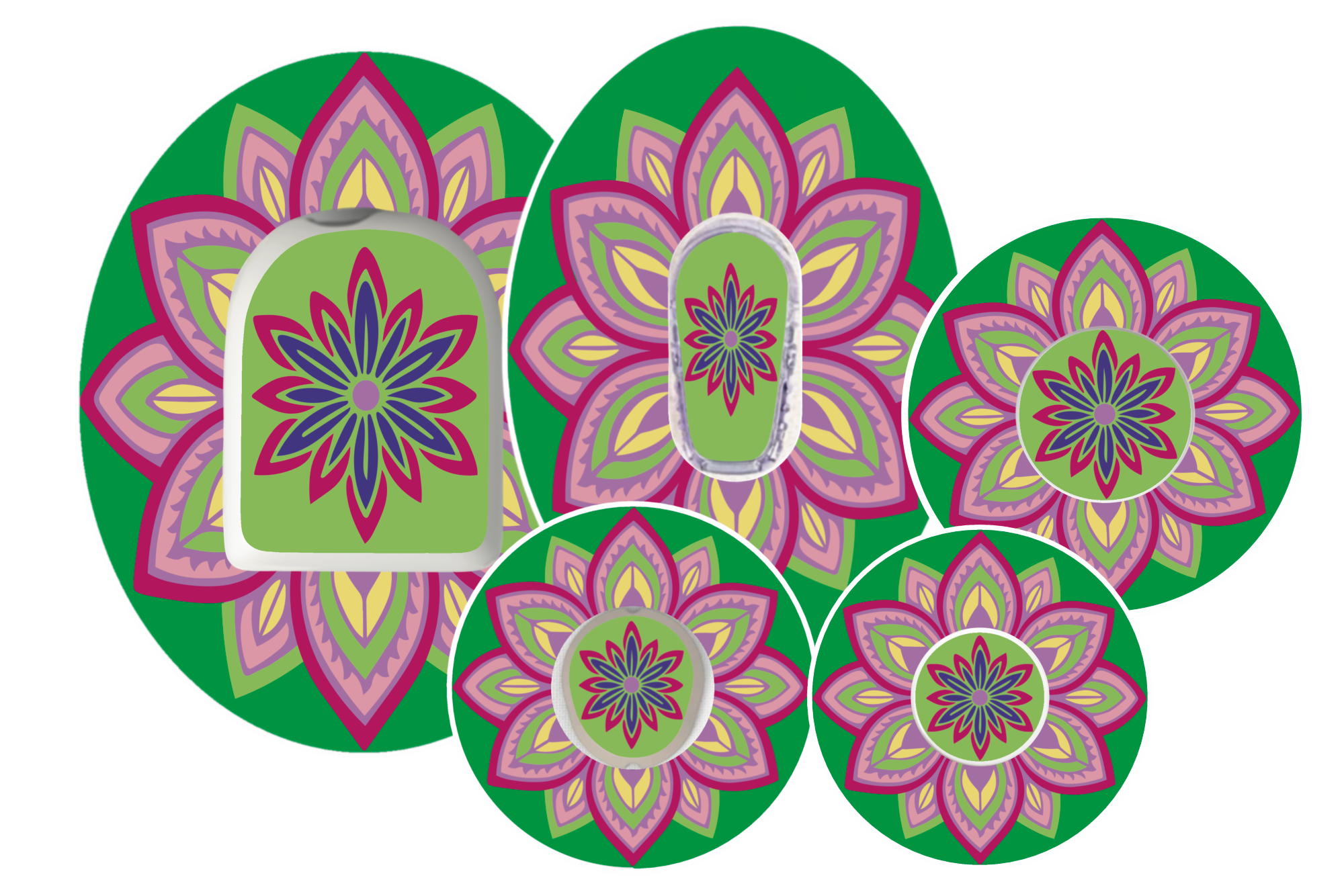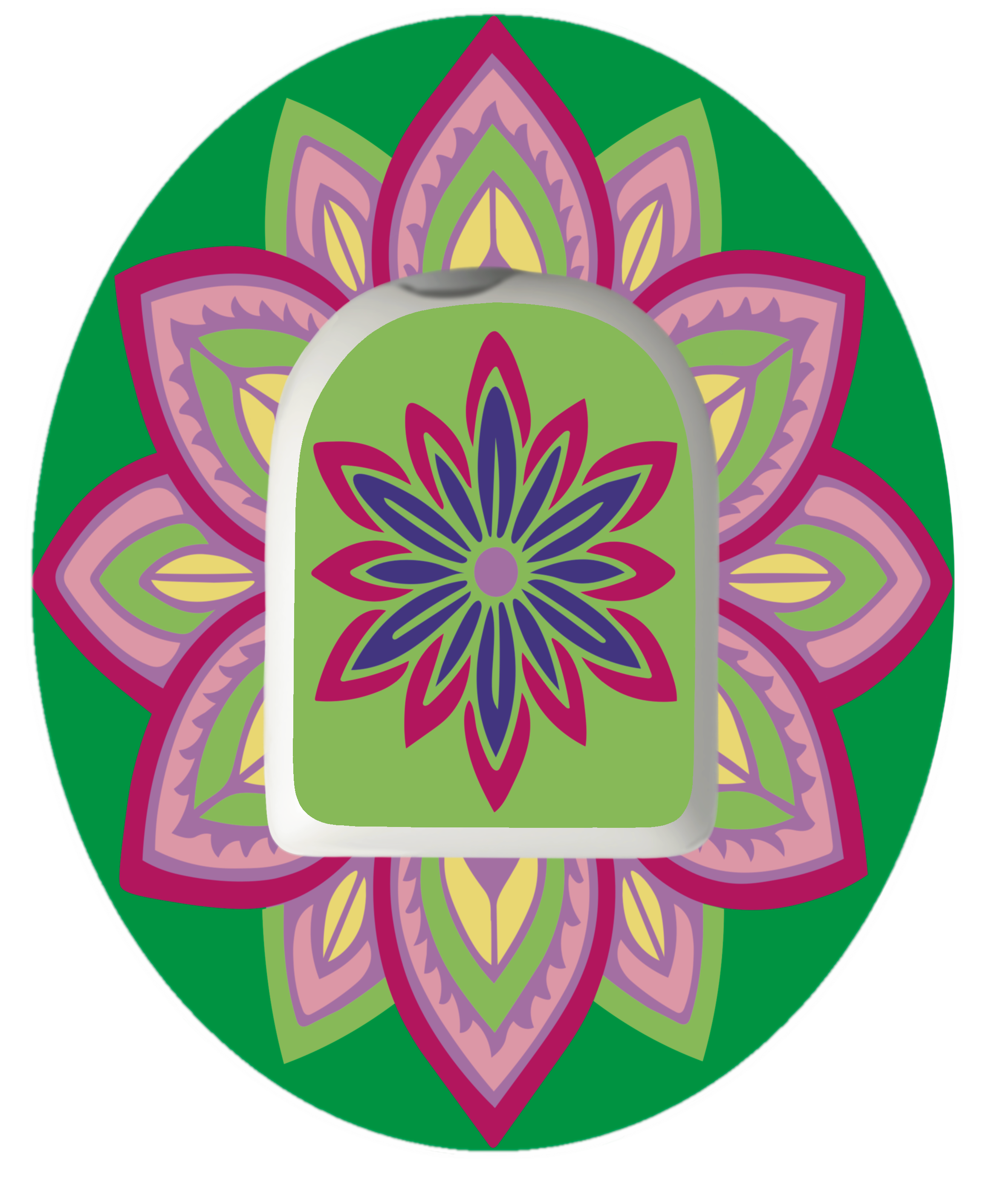 Whether you’re headed to your yoga/pilates class or simply looking for a touch of beauty in your day, this Harmony overlay patch offers both function and elegance. Designed to secure your continuous glucose monitor (CGM) or insulin pump, this patch blends greens, soft pinks, and purples in a calming mandala pattern - adding style and serenity to your diabetic routine.