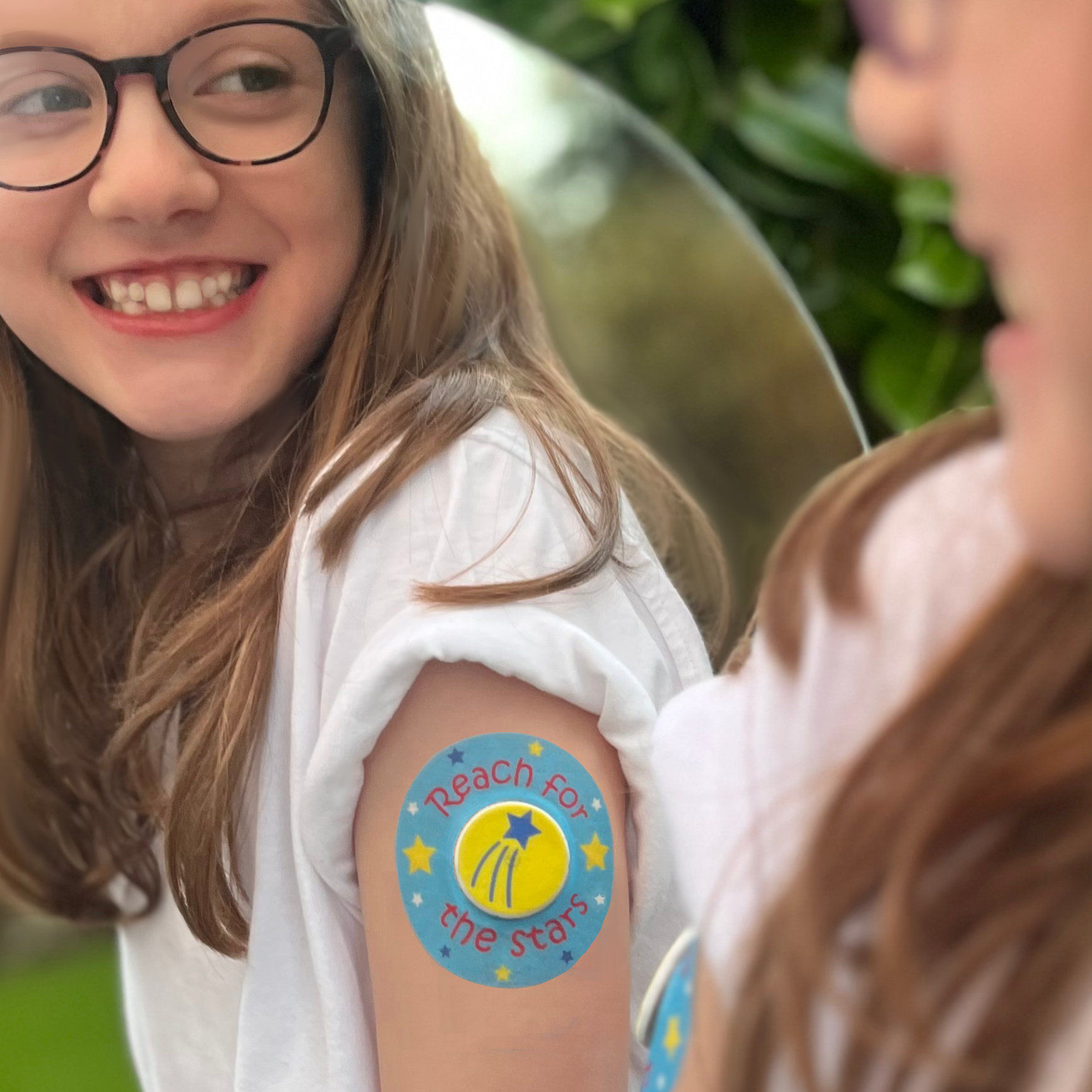 Discover the hidden message, “reach for the stars”, as you glance into the mirror. These inspiring overlay patches encourage you to aim high for whatever makes you happy.
