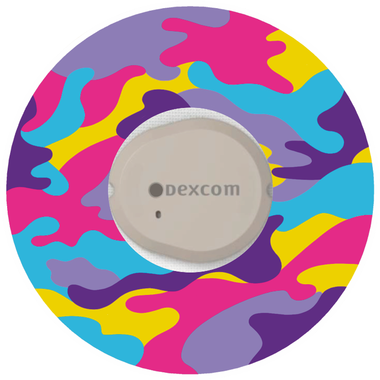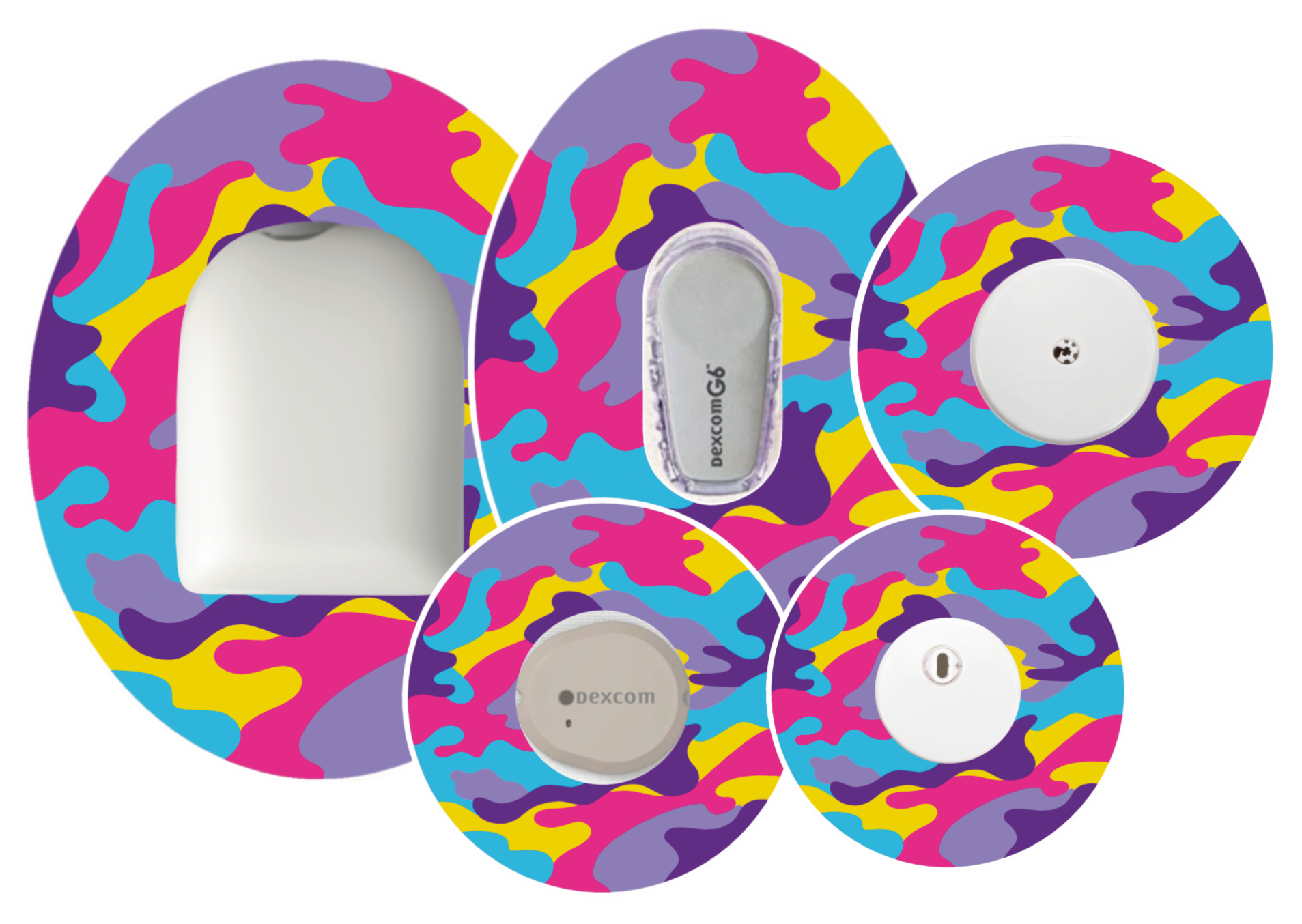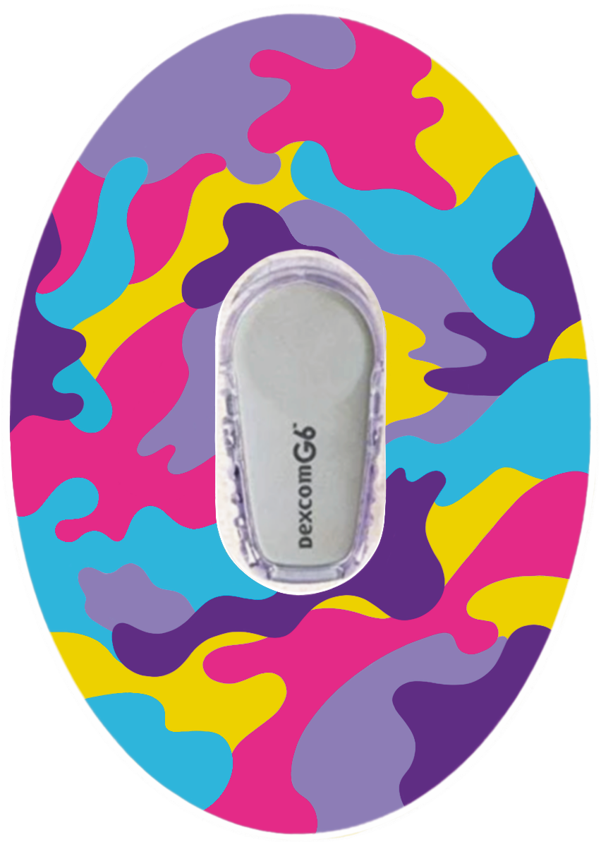 Colourful camouflage overlay patches that are designed to go around your device to hold it in place.