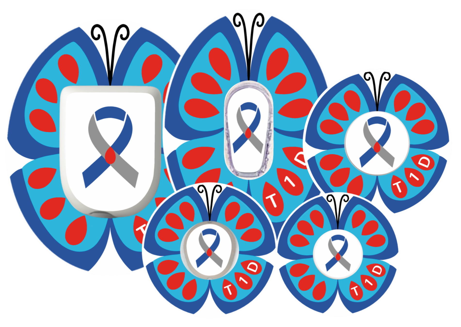 Raise awareness of type 1 diabetes with these vibrant butterfly overlay patches. Designed to go around your device to hold it in place.